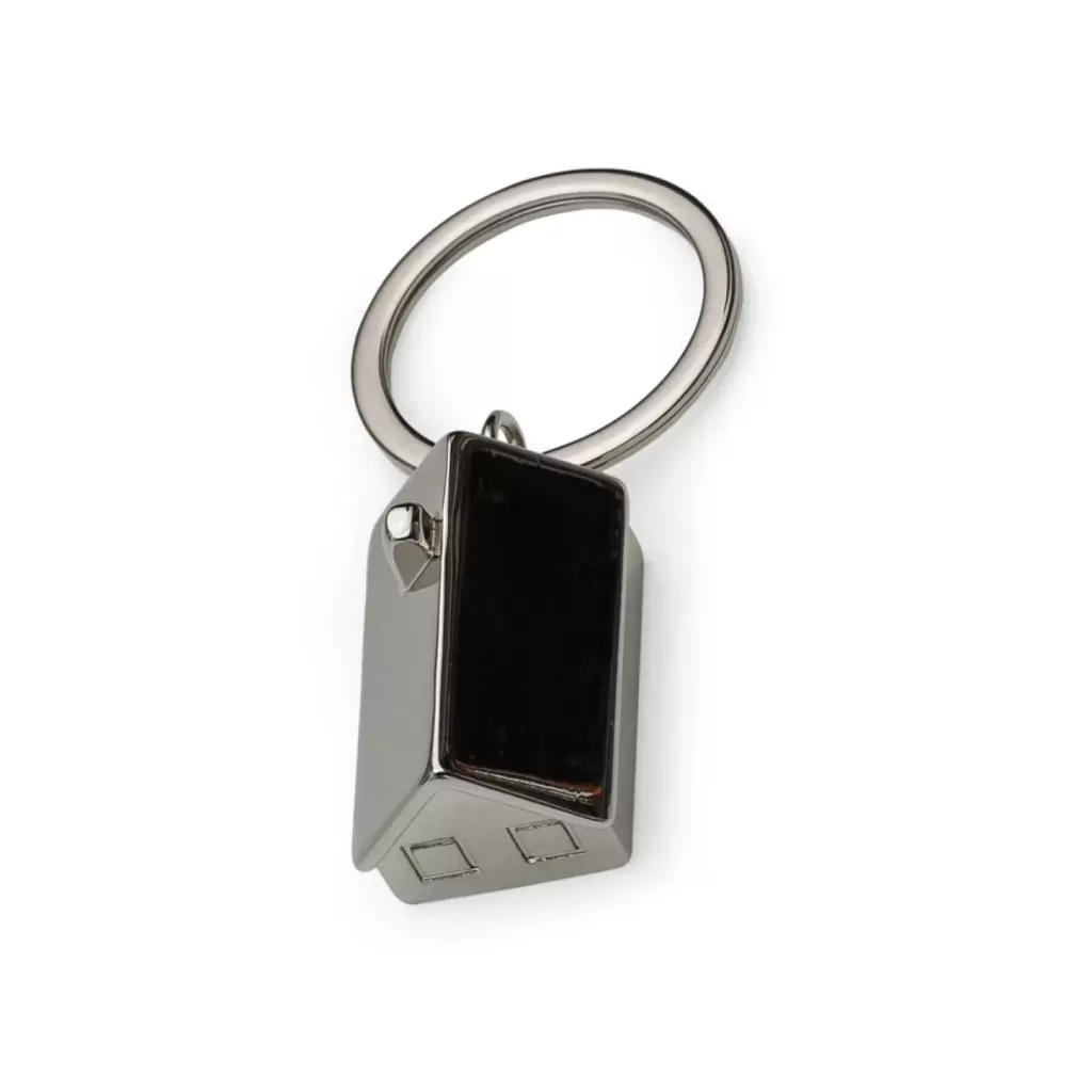 Descrição: Chaveiro 3D formato casa brilhante, contém detalhes em relevo. Parte inferior com chapa inox para personalização