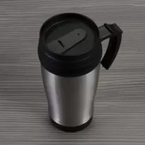 Descrição: Caneca de inox com detalhes plásticos, capacidade de 400ml. Tampa com vedação e bocal com trava de segurança.