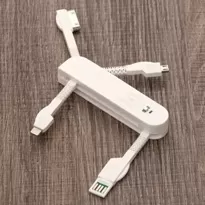 Descrição: Cabo de dados em formato canivete plástico, serve também como carregador USB. Possui cabos adaptadores para: Iphone 5, Iphone 6, Android e Iphone 4. Parte frontal possui descrições ao lado do botão: For iP5 / 6, Micro e For iP4. Basta deixar o botão posicionado conforme o modelo do seu aparelho para fazer o uso.