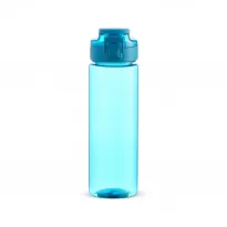 Squeeze plástico com capacidade de 700ml, possui tampa rosqueável com botão de acionamento, trava de segurança e alça para transporte.