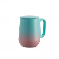 Caneca bicolor parede dupla com capacidade de 250ml, feita em inox 304. Contém tampa plástica de encaixe, alça plástica e base antiderrapante.